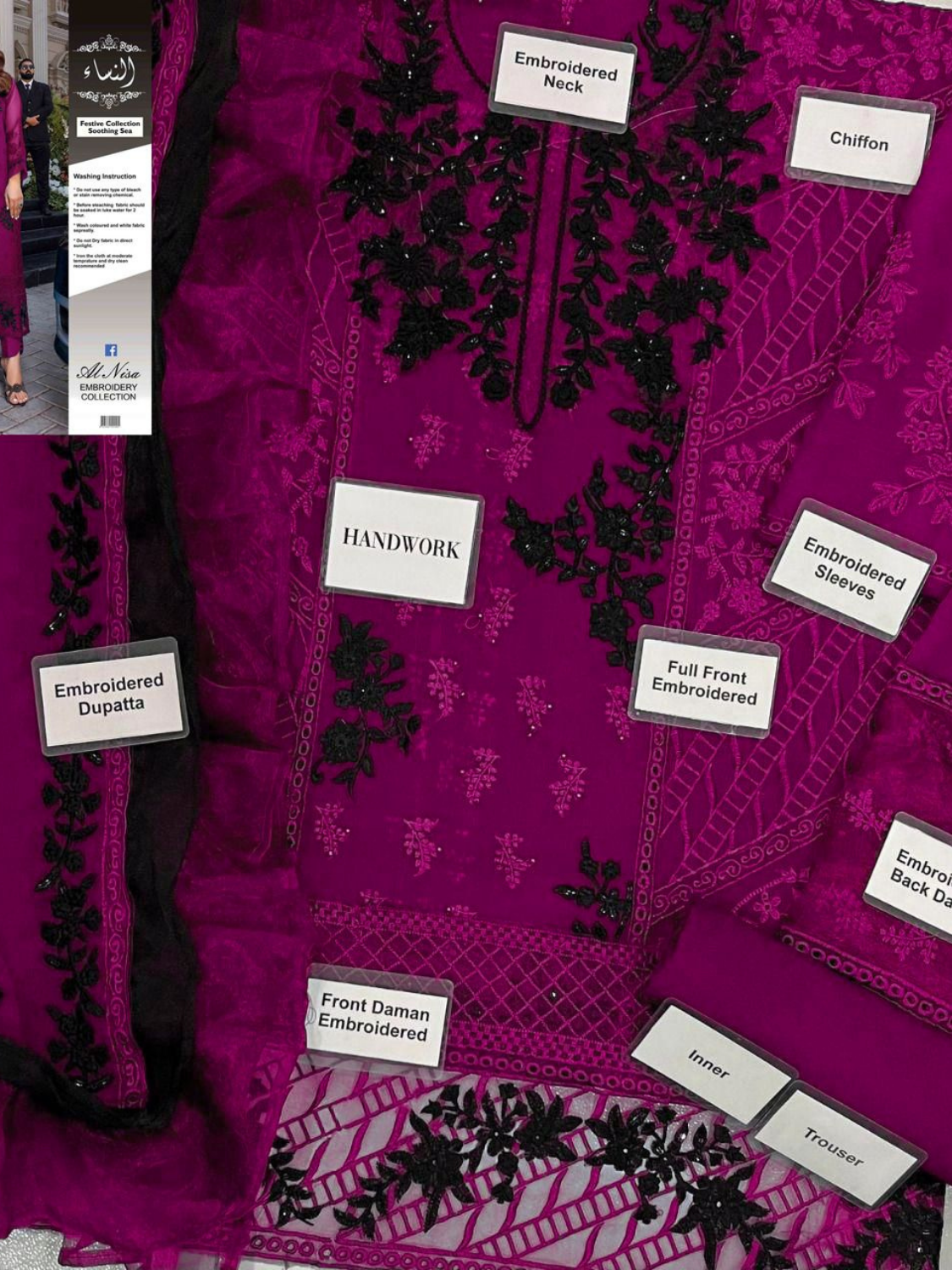 •Embroidered Chiffon Dupatta With 4 Sided Organza Applic