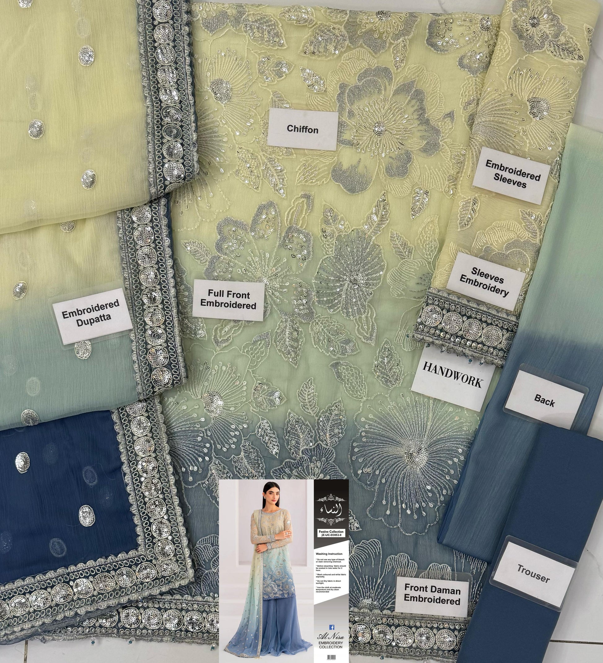 • Heavy Embroidered Sequence Work Chiffon Tye & Dye Front